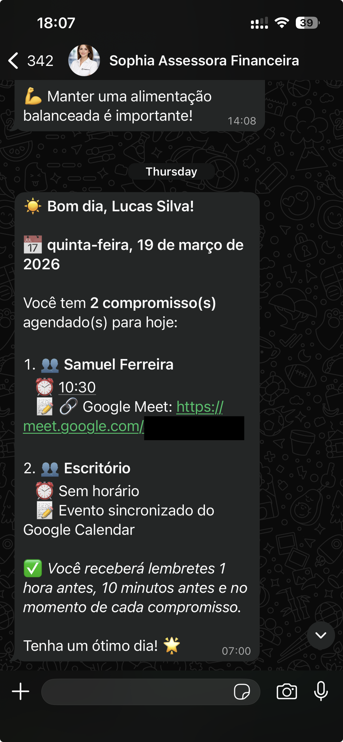 “A Sophia mudou minha relação com dinheiro. Agora controlo tudo pelo WhatsApp sem esforço!”